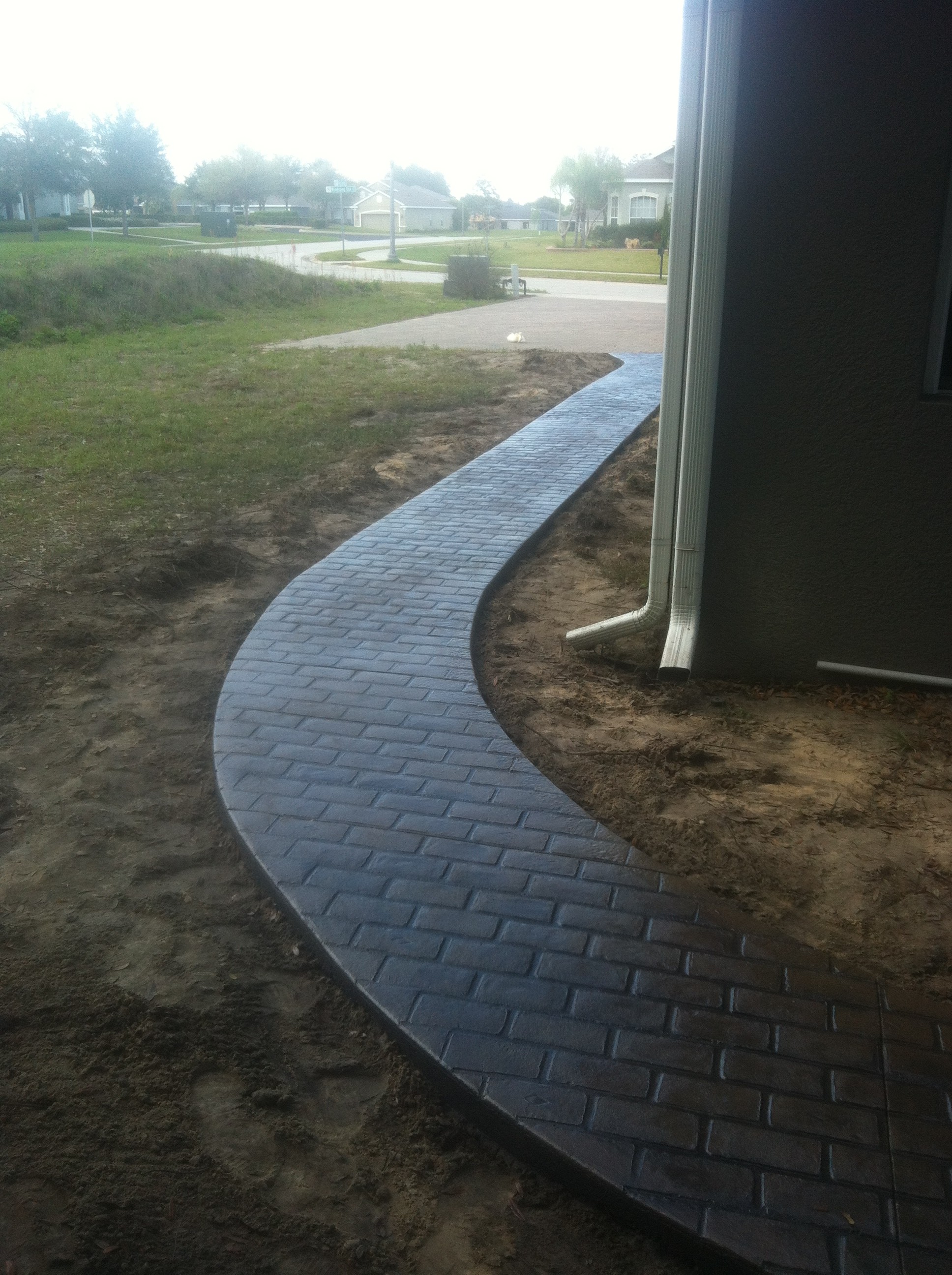 We were able to excavate the area and use our laser level to make sure that our surface elevations allowed water to drain properly off of the new patio space. We are very fast on these small projects. We were able to transform their backyard in only 3 working days over the course of a normal 5 day work week. This will provide plenty of area for a table and chairs and a grill to entertain friends. In addition we added a sidewalk around the Florida room to a very small existing patio adding functionality to their current features. Stamped concrete offers a competitive price coupled with the most durable, low maintenance surface that money can buy. Call the Decorative Concrete Experts today at 407-342-8552 to create the outdoor living space that you have always imagined.