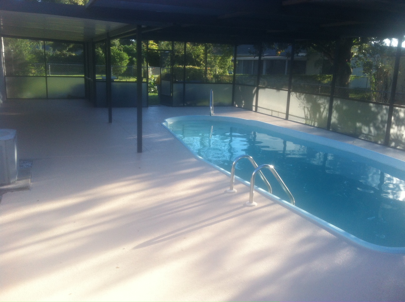 This question is generally asked to establish whether the pool is an older kool deck surface that has never had a sealant applied or if it’s a newer acrylic texture. This is important because a kool deck that has never been sealed will need a lot more product applied to seal the surface. The newer texture will need to be examined to determine what type of coating it has been sealed with. In addition it may be necessary to add a skid resistant admixture to ensure that the deck remains non-slip with the addition of layers of sealant that tend to fill the traction adding voids in the surface.